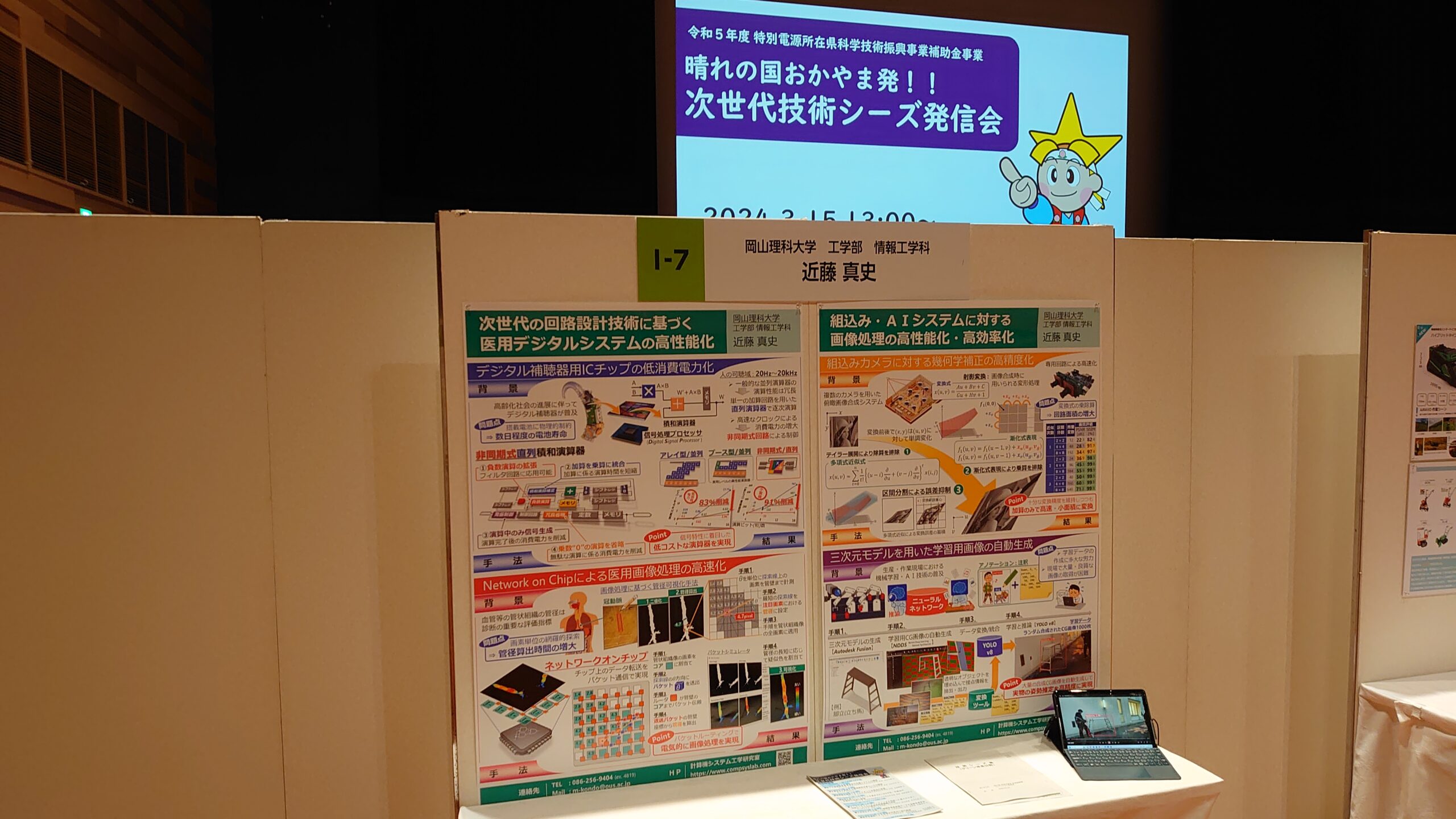 3月15日(金)に イオンモール岡山5階 おかやま未来ホール で開催された「晴れの国おかやま発!!次世代技術シーズ発信会」にて,県内企業との共同研究成果について下記の講演を行うとともに,現在取り組んでいる研究内容とその成果に関するポスター展示を行いました.