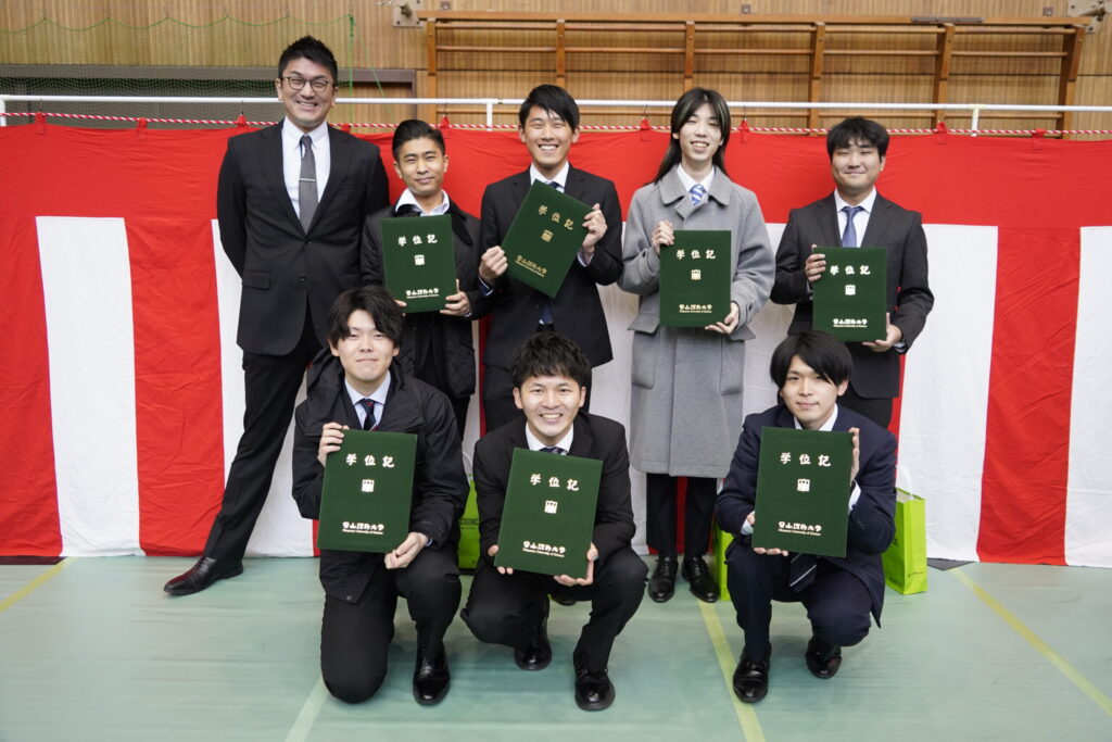 2025年3月20日(木)に 加計記念体育館で開催された 岡山理科大学 令和6年度学位記授与式にて,学部4年生7人が無事に卒業しました!内5人は県内外の企業に就職し,2人は本学大学院にて引き続き研究活動を行う予定です.全員の今後の更なる活躍を期待しています!!