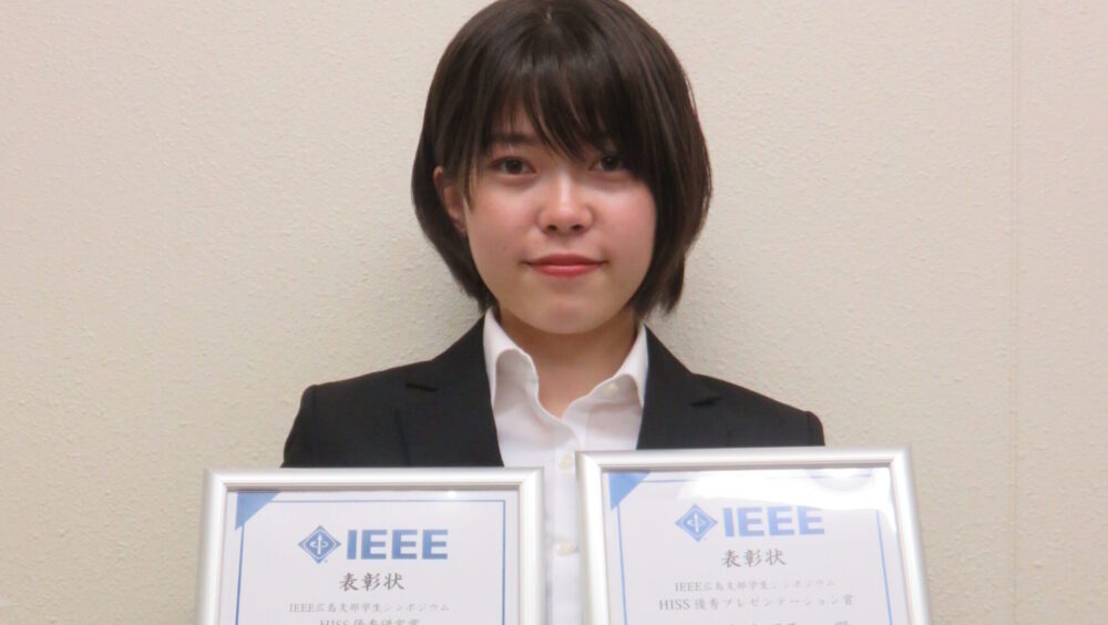 未分類学部4年生の滝川さんが,2019年11月30日(土)~12月1日(日)に岡山県立大学で開催された第21回IEEE広島支部学生シンポジウム(HISS)において「優秀研究賞」と「優秀プレゼンテーション賞」をダブル受賞しました.優秀研究賞は事前の査読結果を基に研究内容および優れたポスター発表を行った学生に,優秀プレゼンテーション賞は当日の来場者の投票を基に今回は約150件の発表の中から上位6名に,それぞれ受賞されました.