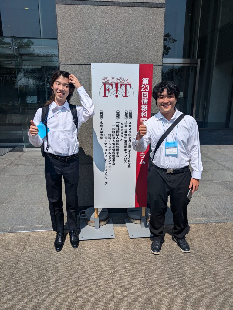 2024年9月4日(水)~6日(金)に広島工業大学で開催された第23回情報科学技術フォーラム(FIT2024)にて,学部4年の門田くんが下記の研究発表を行いました.