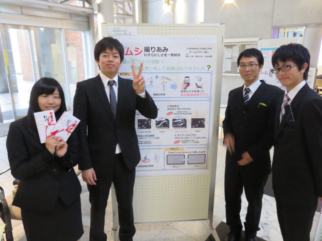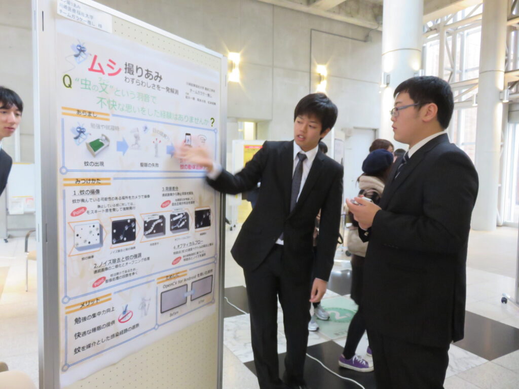 未分類学部4年生の姫井くんが提案した下記ケータイアプリのアイデアが学生ケータイあわ~ど2014の最終審査に進出し,2014年11月1日(日)に広島市立大学で開催された最終審査会でポスター発表を行いました.