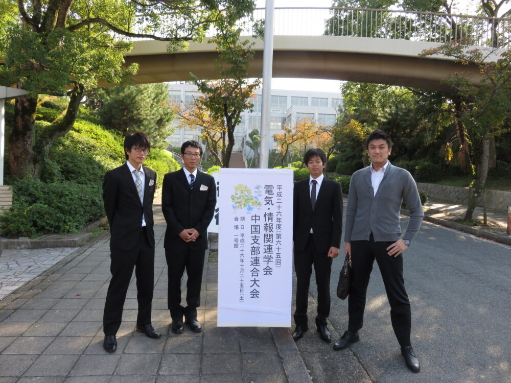 2014年10月25日(土)に福山大学で開催された「平成26年度電気・情報関連学会中国支部連合大会」にて,学部4年生2名が下記の研究発表を行いました.